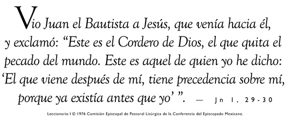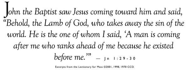 - Next Sunday: Is 49:3, 5-6 / Ps 40:2 and 4, 7-8, 8-9, 10 / 1 Cor 1:1-3 / Jn 1:29-34