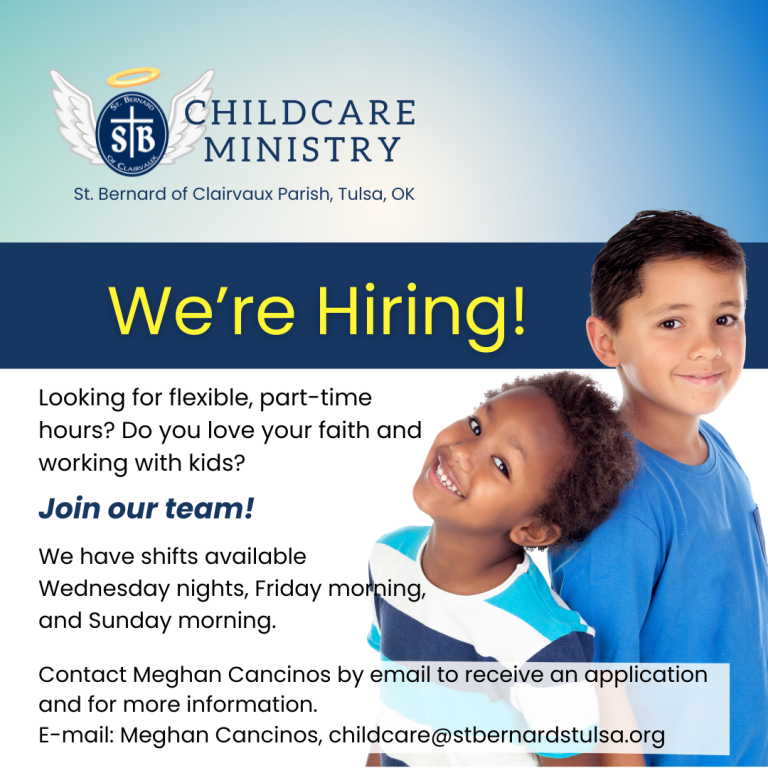The nursery is available during the four weekend Masses for children 4-years-old and younger. Space is limited.